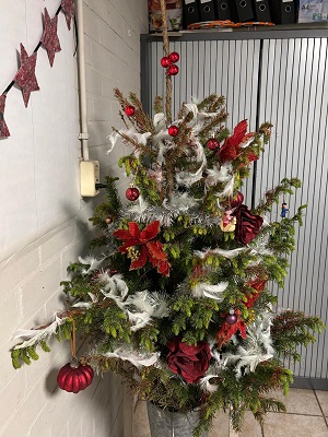In aanloop naar de kerst en meer concreet in aanloop naar de workshop Kerststukjes maken is de kantine in kerstsfeer gebracht.