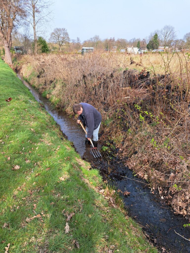 Hananja verwijdert blad uit de hoofdsloot.