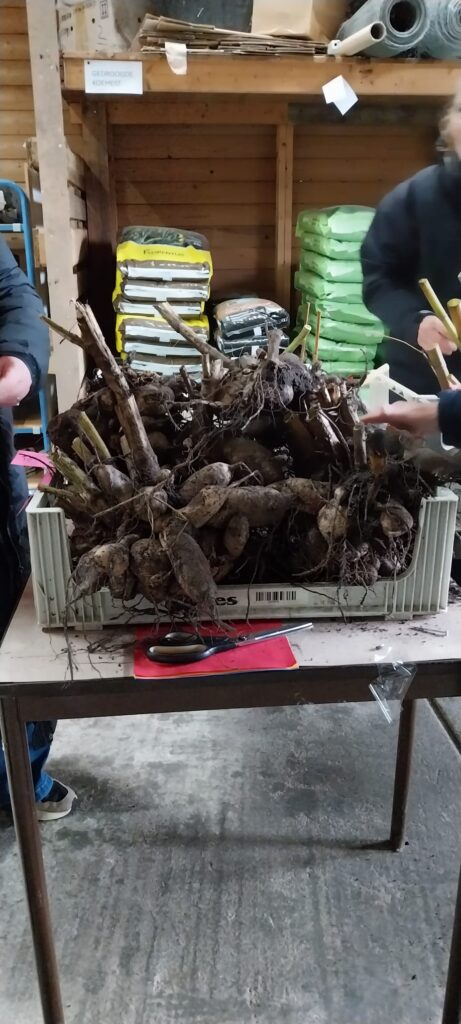 Op zaterdag 15 november konden bij de vereniging dahliaknollen geruild, gedoneerd en gekocht worden. De Dahliaknollen ruilbeurs zou aanvankelijk bij de Tuintreffer opgezet worden, maar onverwachts werd het zulk onaangenaam weer dat op de valreep naar de loods van het Tuinderskwartier werd uitgeweken. Hoe dan ook konden de Dahlia-liefhebbers hun hart ophalen.